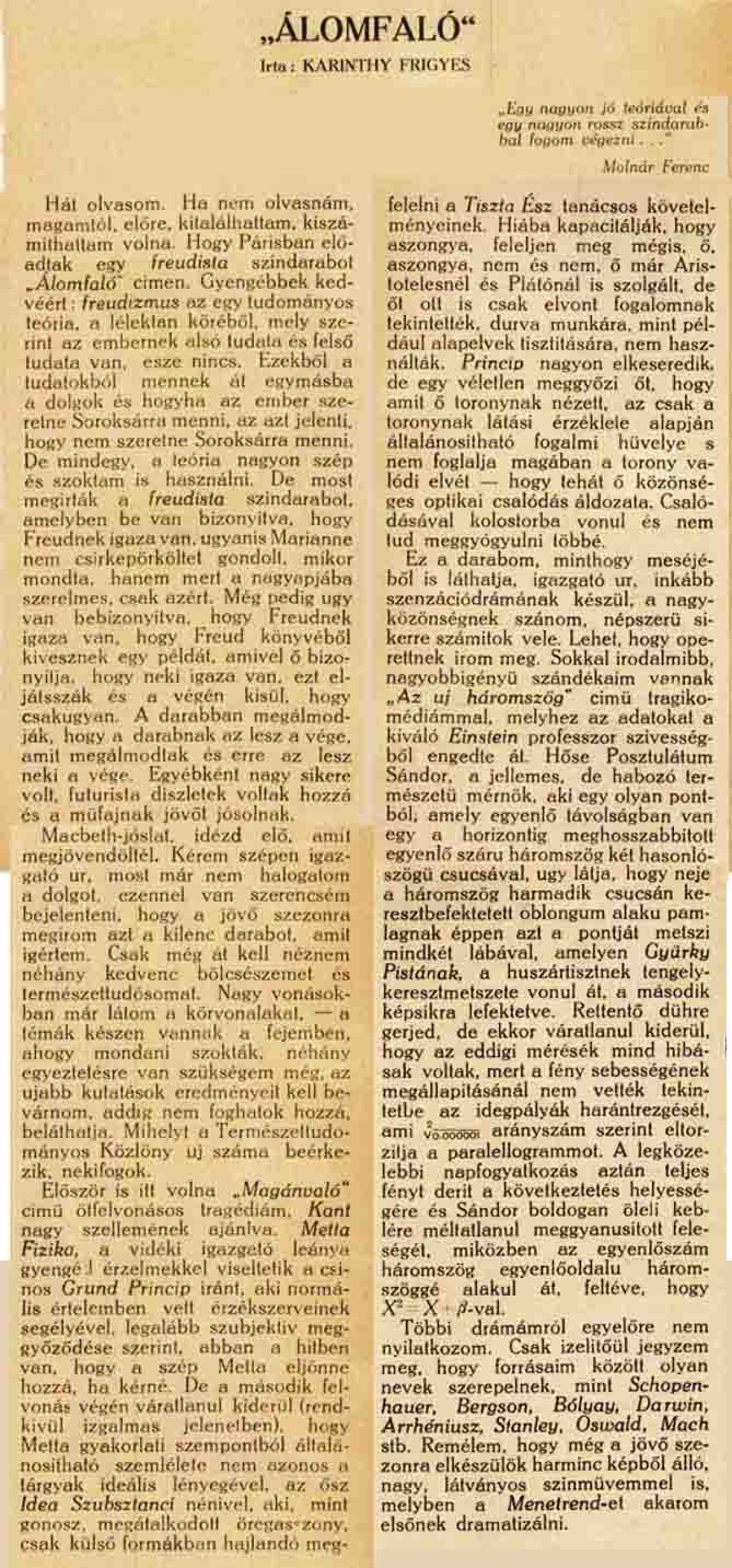 Karinthy : Drames à l’huile