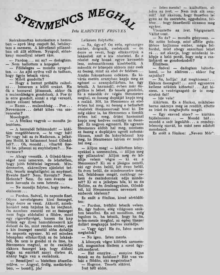 „KIJELENTETLEN MINDENESEK ÉLÉN”