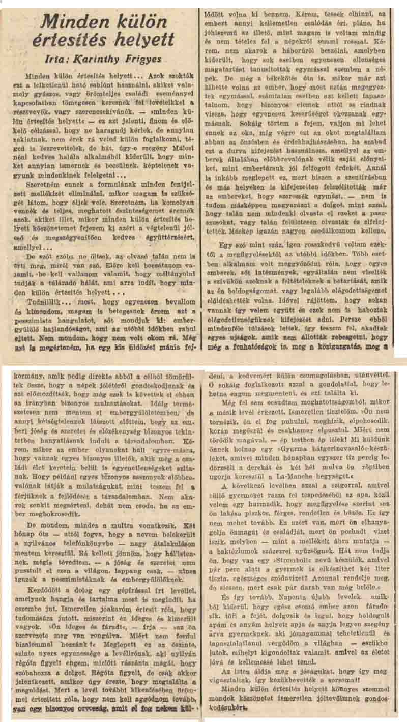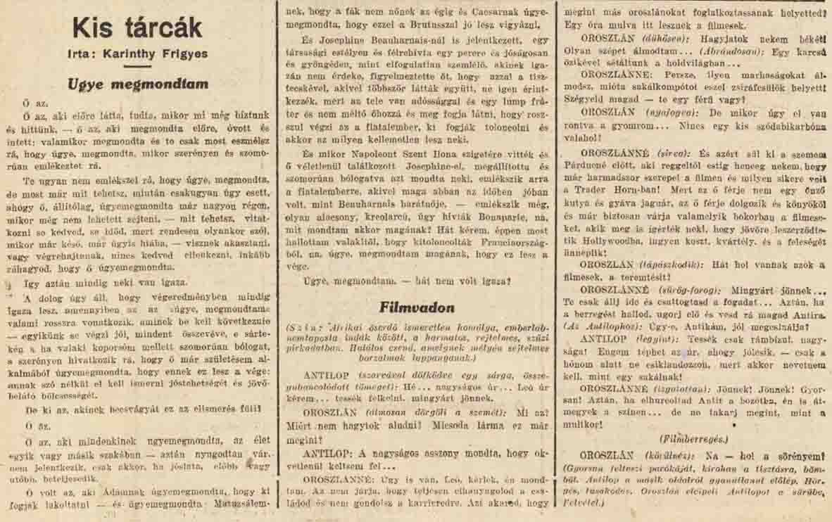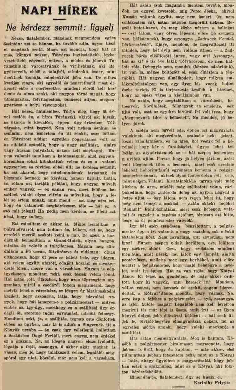FRIGYES KARINTHY REND COMPTE