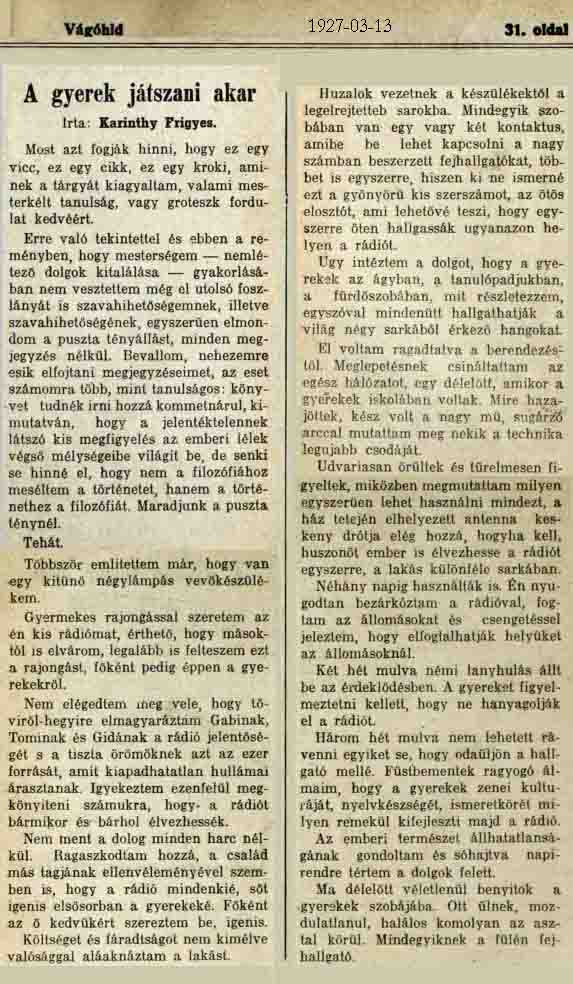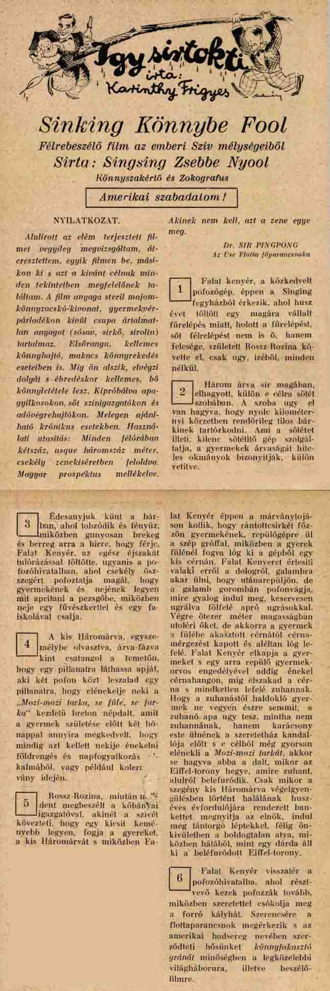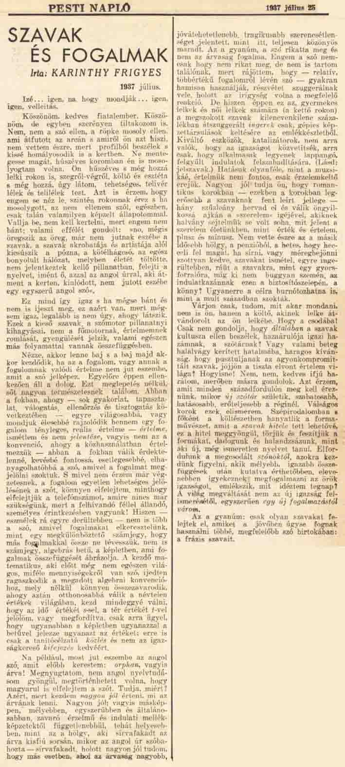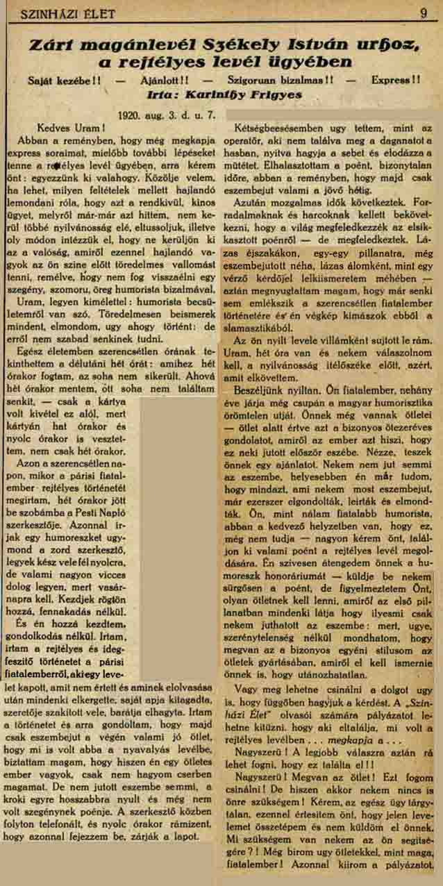 FRIGYES KARINTHY REND COMPTE