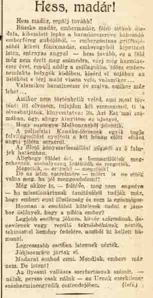 tudósítása a Zeppelin fedélzetéről
