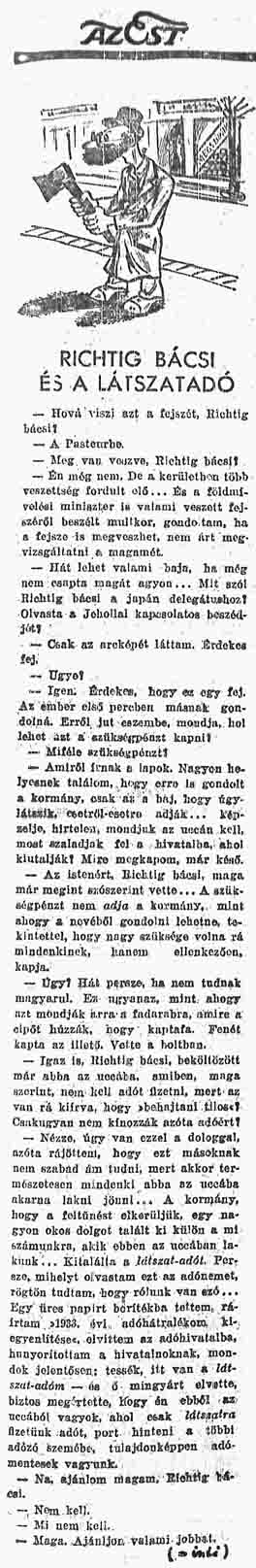 RICHTIG BÁCSI ÉS A LÁTSZATADÓ