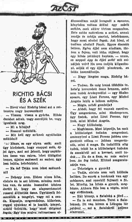 RICHTIG BÁCSI ÉS A SZÉK