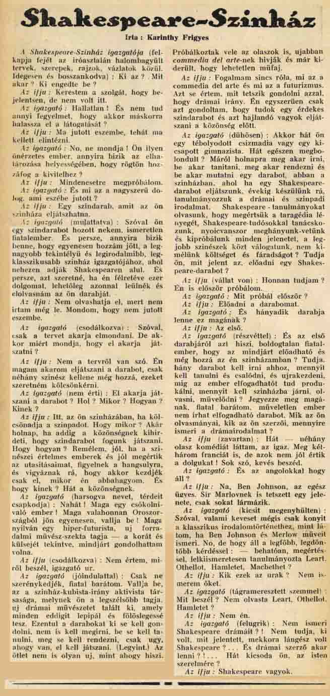 Karinthy : Drames à l’huile