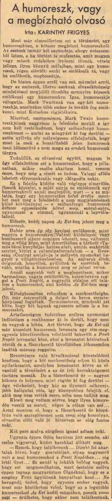 FRIGYES KARINTHY REND COMPTE