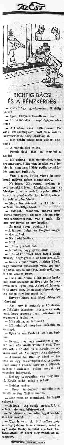 RICHTIG BÁCSI ÉS A PÉNZKÉRDÉs